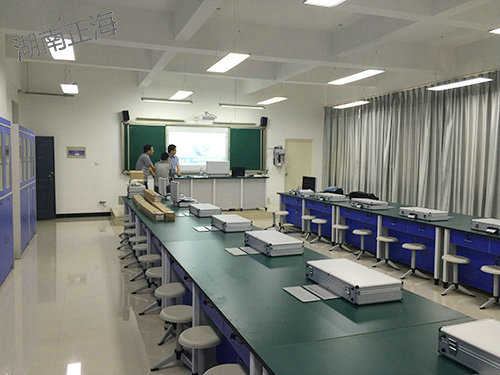 物理實驗室分為:物理電學室,物理力學室,物理光學室以及物理探究室。其中電學帶電源插座。電學,力學,光學都是排排坐擺放,探究室采用的是中央臺形式 方便學生學習和討論。一般坐位采用1200*600*780mm ,配套一間準備室及儀器室。